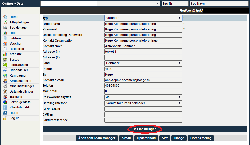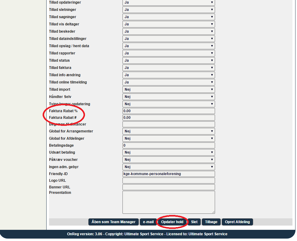 Er der et hold som skal rabat på deres tilmeldinger, så kan du give dem rabat i procent eller kr. Rabatten vil derefter blive fratrukket på den samlede faktura.