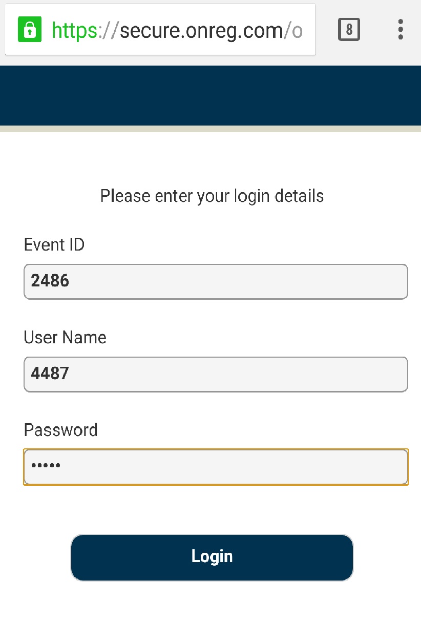 2) Indtaste det Event ID, Brugernavn og Password som står i sms'en og klik på "Login"
