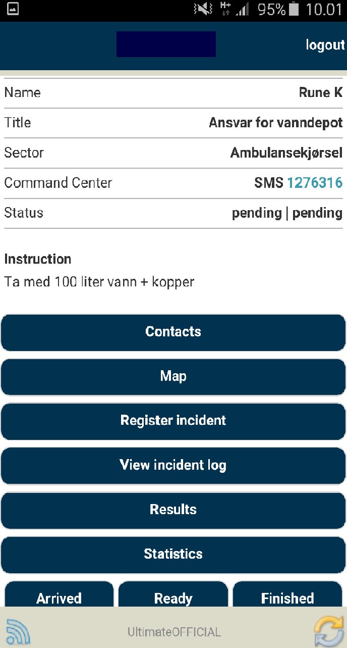Arrived: Den skal Officials klikke på, når de er ankommet til deres position, så projektlederen/arrangøren kan se, om alle står det rigtige sted